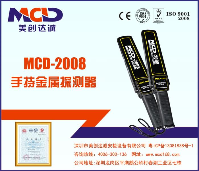 MCD-2008型手持式金屬探測器是深圳美創(chuàng)達(dá)誠經(jīng)過多年的金屬探測研發(fā)生產(chǎn)經(jīng)驗,為助力中國2008奧運(yùn)火炬接力而特別研發(fā)的一款具有高性能、高性價比的手持金屬探測產(chǎn)品,所有配件全部采用優(yōu)質(zhì)元器件制作,掃描面積大、性能穩(wěn)定、耐用,操作簡單、外型輕穎美觀,并具有高低靈敏度轉(zhuǎn)換功能,當(dāng)探測到金屬時,探測器將發(fā)出音響聲或振動提示,本機(jī)可帶耳機(jī)功能,可以在環(huán)境喧鬧的情況以及探測結(jié)果不想讓其他人知道的情況下使用。其靈敏度足以探測到大頭針打小的金屬物體。并附帶有外接充電器功能,可在探測器本機(jī)進(jìn)行充電。MCD-2008手探廣泛用于機(jī)場、工業(yè)區(qū)、政府大樓、學(xué)校、醫(yī)院、會議場所、運(yùn)動會等需要進(jìn)行安全檢查的場所。