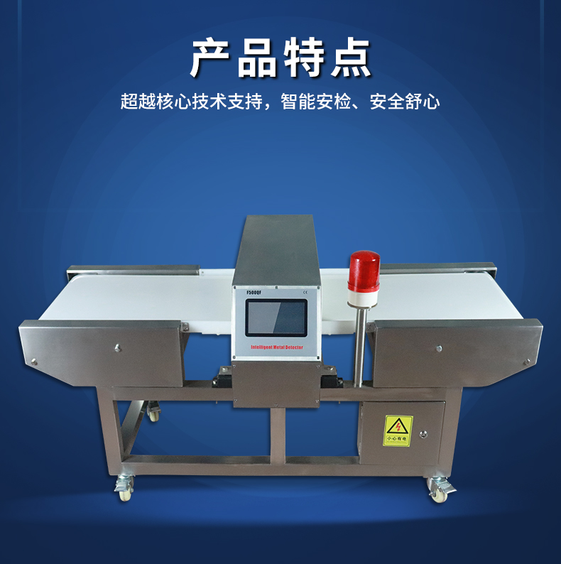 新品上市!MCD-F500QF食品安全金屬檢測(cè)用!特別適用于水分、鹽分過高的食品安全檢查,也用于檢查目前行業(yè)里面不能檢查的鋁箔包裝的食品安檢。本型號(hào)是美創(chuàng)達(dá)誠(chéng)安檢設(shè)備有限公司根據(jù)多年從事金屬探測(cè)儀研制開發(fā)生產(chǎn)的基礎(chǔ)之上,推出新一代微電腦智能型高靈敏度,高可靠性觸摸屏界面金屬檢測(cè)儀,產(chǎn)品采用雙回路電路設(shè)計(jì),性能更穩(wěn)定。新型7寸超大全彩色液晶觸摸屏,雙語(yǔ)菜單設(shè)計(jì),操作更方便、更人性化。此為全金屬檢測(cè)儀器,可檢測(cè)鐵和非鐵等金屬,靈敏度可分別調(diào)節(jié),帶記憶功能可預(yù)設(shè)6種檢測(cè)物質(zhì),對(duì)帶水份的產(chǎn)品及冰凍產(chǎn)品有很好的排除性,突破大部分設(shè)備只對(duì)磁性物質(zhì)反應(yīng)靈敏的技術(shù)瓶頸,檢測(cè)儀采用聲光報(bào)警,同時(shí)自動(dòng)排除、停機(jī)、、倒帶功能,人性化菜單,觸摸屏操作方便,整機(jī)采用不銹鋼材料,防腐蝕、不生銹、易清洗。因此廣泛應(yīng)用于食品、藥品、玩具等要求高的物體里的金屬的檢測(cè)。其特點(diǎn)及操作介紹如下: