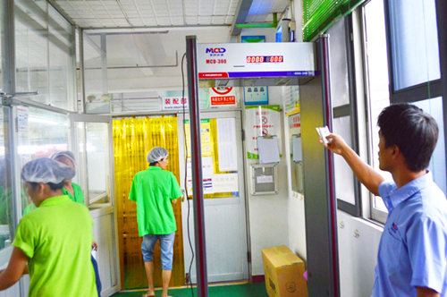 此次,深圳森紹榮(玩具廠)大量采購我司這種防水性安檢門,工廠此次目的也是用來進行安全檢查、防偷竊檢查,而我司這款MCD-300安檢門能準(zhǔn)確探測到人身上或手提包箱中攜帶的金屬物品或含有金屬的物品,如各種管制刀具、武器、金屬制品、電子產(chǎn)品及其他含有金屬的物品等,森紹榮安裝了我司生產(chǎn)的高端國產(chǎn)MCD-300型安檢門,得到良好的效果及廠領(lǐng)導(dǎo)的一致肯定與好評。