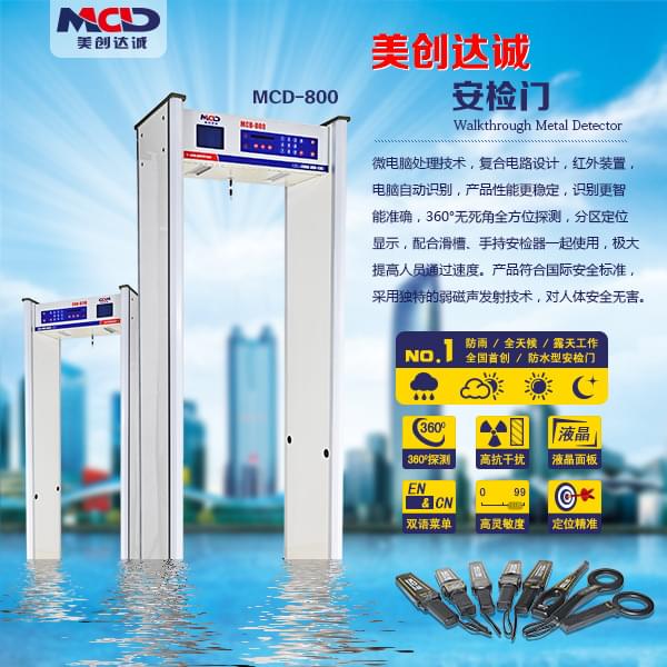 MCD-800A高考安檢門是一款非常高端精密的金屬探測(cè)門,美創(chuàng)達(dá)誠所推出的這款MCD-800金屬探測(cè)門采用國際先進(jìn)數(shù)碼探測(cè)技術(shù),專門用于對(duì)人身上隱藏的金屬及合金物品的探測(cè)防范。整體防火、防水、防震設(shè)計(jì),加寬型門板設(shè)計(jì)外觀大氣,安全性高、適用性強(qiáng)、靈敏度高、探測(cè)范圍廣、抗外界干擾能力強(qiáng),能夠24小時(shí)智能服役,能夠聲光同時(shí)報(bào)警,在質(zhì)量、效果、技術(shù)參數(shù)上均達(dá)到了世界領(lǐng)先水平??梢哉{(diào)節(jié)靈敏度,最高可以探測(cè)到曲別針大小的金屬物,并可以區(qū)分金屬所藏區(qū)位顯示,用戶還可根據(jù)探測(cè)金屬的大小、體積、重量等進(jìn)行設(shè)置,以排除硬幣、鑰匙、首飾,適合于私人豪宅等地方,以及需防止攜帶危險(xiǎn)金屬物品的場(chǎng)所,"MCD-800A"不光應(yīng)用在考場(chǎng),同時(shí)也可以應(yīng)用在機(jī)場(chǎng)、海關(guān)、監(jiān)獄、展廳等地方,安裝美創(chuàng)達(dá)誠"MCD-800A"數(shù)碼金屬安檢門將是您英明的選擇!
