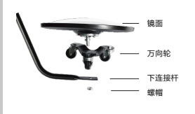 1.把鏡面、萬(wàn)向輪跟鋁管連接,并用螺絲固定好,如下圖:
