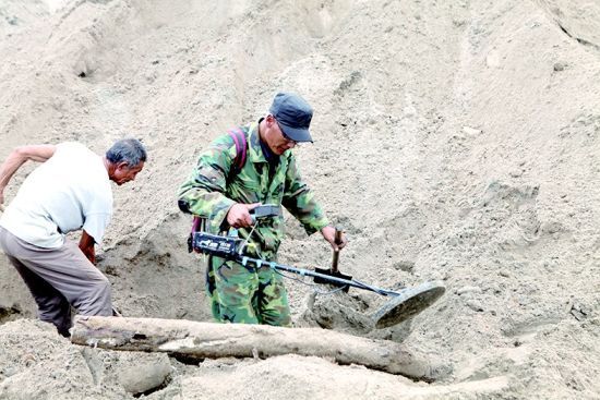 記者看到,鏟子、鋤頭、鐵鍬這些挖寶工具都不算新鮮的,更甚者還有人帶來了專業(yè)的金屬探測儀,在不斷盯著地面尋找。