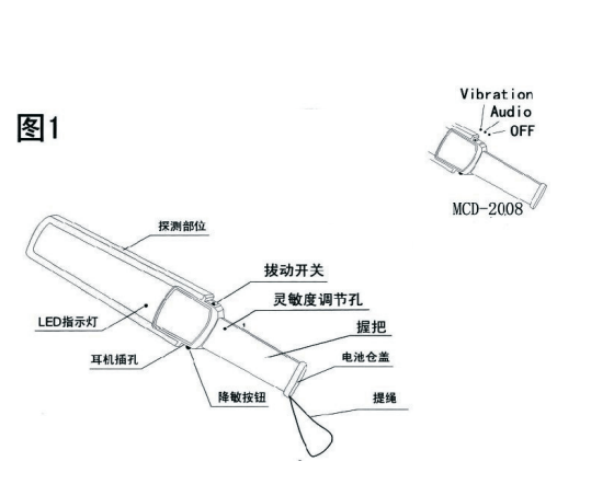 美創(chuàng)達(dá)誠(chéng)MCD-2008手持金屬探測(cè)器耳機(jī)使用方法: